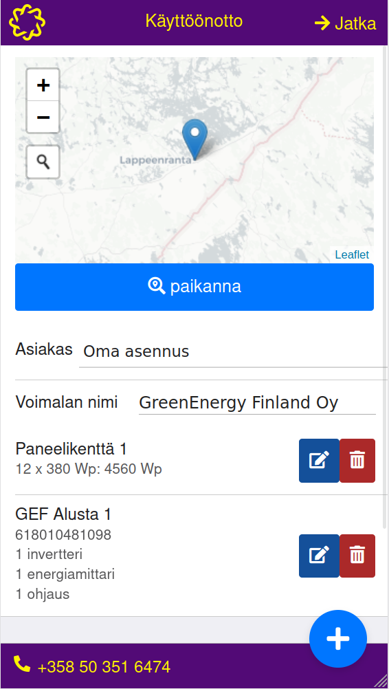 Kun kaikki tiedot on lisätty, voit jatkaa käyttöönottoa painamalla oikeasta yläkulmasta Jatka. Kuvan mukainen sivu avautuu: