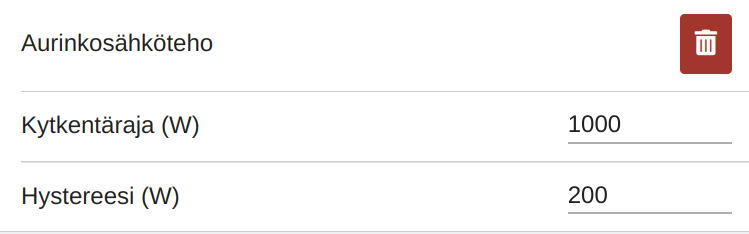 • Kytkentäraja: Kun invertterin tuottama teho ylittää tehorajan (+hystereesi), lähtö kytketään päälle.