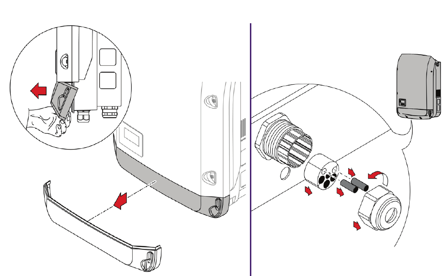 Irroita invertterin alakansi ja tuo antennikaapeli läpiviennin kautta invertterin sisälle.